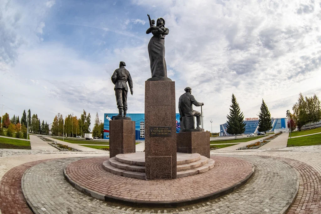 Монумент был установлен в 2001 году перед дворцом спорта «Старт», в городском парке. Это подарок городу от компании «Лукойл». Композиция состоит из трёх скульптур: сидящего пожилого мужчины, молодого десантника и женщины с младенцем, которые символизируют «Связь поколений».